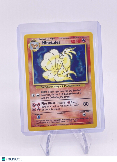Ninetales Pokemon Card 12/102 Base Set Unlimited Holo Vintage 1999 E2
