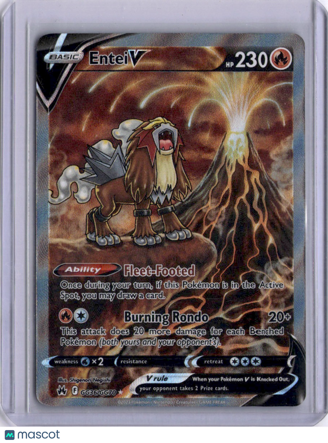 You are purchasing a Entei V 2022 Brilliant Stars #22/172 Full Art. You will receive the exact item in the photographs. Thank you for looking. Condition can be viewed in photos. If you have a question on condition please ask before purchasing. Shipped with USPS First Class. Thank you for checking out this listing! To keep up with us on social media follow us at @Lab20Cards on Instagram and Twitter Raw cards are sold as such, and no questions regarding expected grade or guarantees of such will be responded to. Condition is noted as used - cards can have any number of issues that do not detract from the overall look of the image on the card. These issues can include scratches/surface wear, and flaws on edges and corners. See photos provided for centering condition as well as to make your own assessment of card condition. ***PLEASE NOTE THAT ALL SALES ARE FINAL, AND RETURNS ARE NOT ACCEPTED. SEE PHOTOS PROVIDED OF EACH ITEM PRIOR TO BIDDING, AND NOTE THAT PER ITEM DESCRIPTION CARDS MAY HAVE FLAWS AND ARE NOT GUARANTEED TO MEET A CERTAIN CONDITION*** Listed With Mascot.