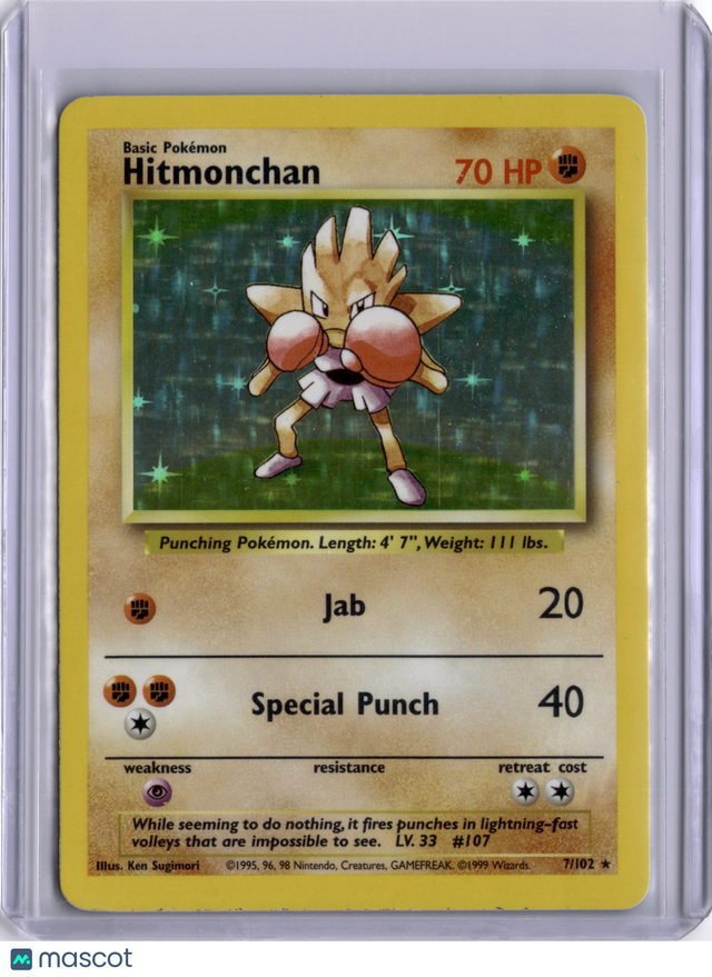 Hitmonchan 1999 Pokemon Base Set 7/102 Holo Rare TCG