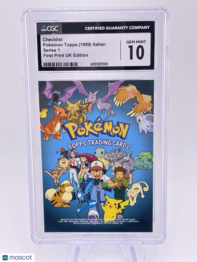 Pokémon Topps Checklist 1999 Italian Series 1 First Print Uk Edition Cgc 10