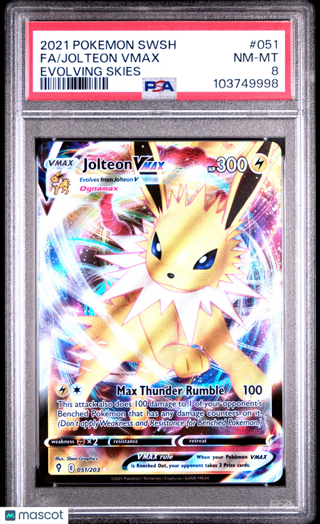 Jolteon Vmax Full Art 2021 Pokemon Sword & Shield Evolving Skies #051 PSA 8