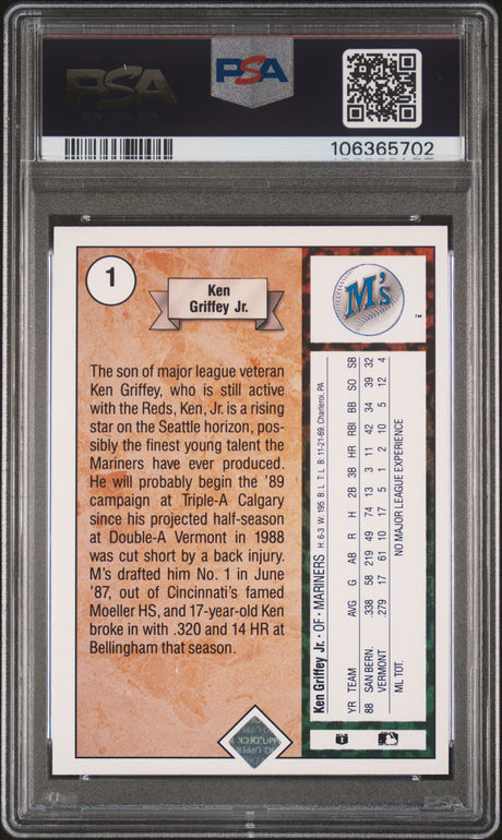 Ken Griffey Jr 1989 Upper Deck Rookie Star RC PSA 8 Mariners HOF