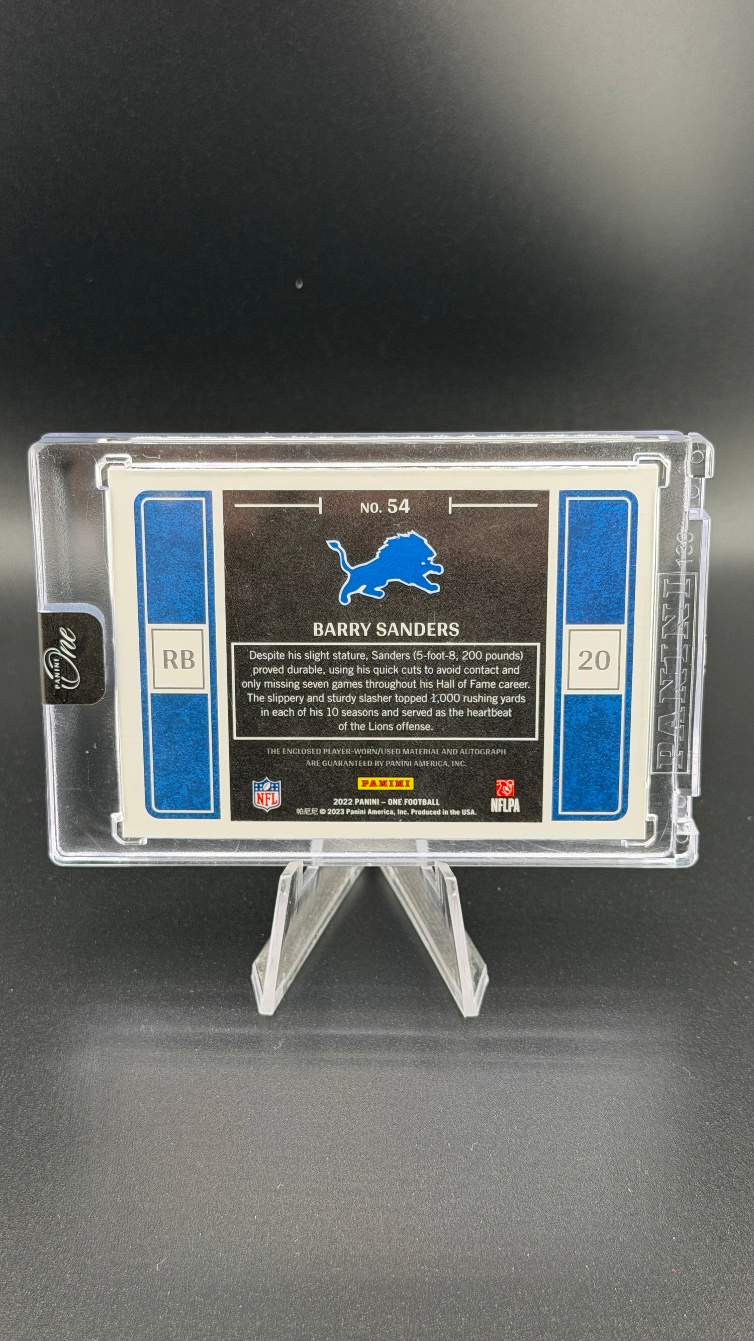 Barry Sanders 2023 Panini One Quad Patch Auto /10 3 Color Lions HOF is backordered and will ship as soon as it is back in stock.