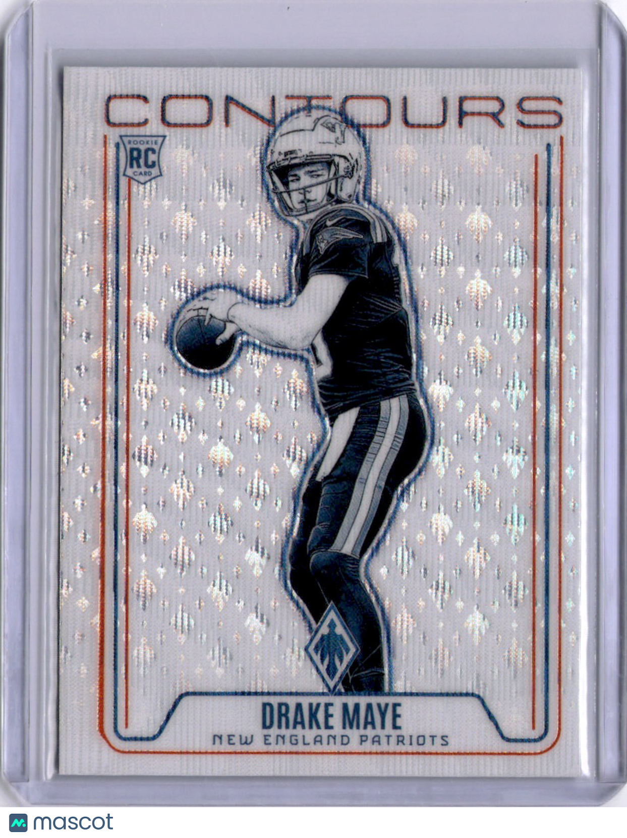 You are purchasing a Drake Maye 2025 Panini Phoenix Contours Parallel/Variety Rookie Insert RC Football. You will receive the exact item in the photographs. Thank you for looking. Please Read Before Purchasing Card Condition: All cards are sold as raw and listed as used. Cards may display various imperfections including, but not limited to, surface wear, edge and corner flaws, or scratches. These are common in raw cards and do not necessarily impact the visual appeal. Photos Provided: High-quality images are included for every listing. Please review all photos carefully to assess centering, surface, corners, and edges. We encourage buyers to evaluate the condition based on these images. Grading Disclaimer: We are not professional graders and cannot guarantee any specific grade or condition. Requests for grading estimates or guarantees will not be answered. Questions Welcome: If you have any specific questions about the card's condition before purchase, feel free to reach out—we’re happy to help clarify anything we can. Offers & Pricing We appreciate your interest in our listings! Please note: We do not respond to messages asking for our lowest price. If you would like to make an offer, please use the “Make Offer” feature directly on the listing. This ensures fair and timely review of all offers in the order received. Shipping & Returns Cards are shipped securely via USPS Ground Advantage or USPS Proity. All sales are final. We do not accept returns, so please review the photos and item description thoroughly before purchasing or placing a bid. Connect With Us Thank you for checking out our listing! Stay updated on new arrivals and hobby content by following us on Instagram and Twitter: @Lab20Cards Listed With Mascot.