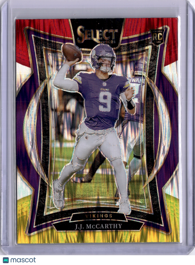 JJ McCarthy 2024 Panini Select Red Yellow Shock Rookie RC Commanders is backordered and will ship as soon as it is back in stock.