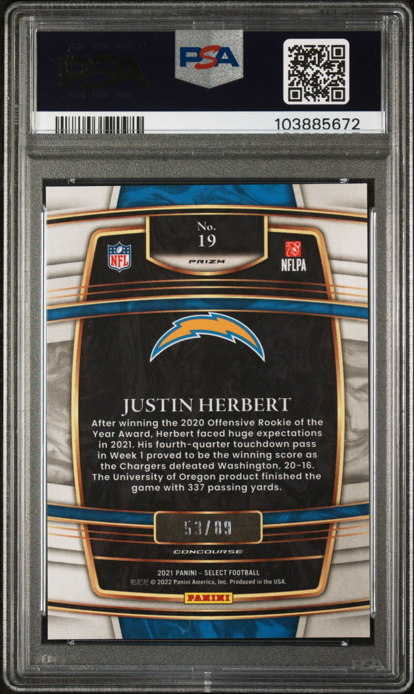 Justin Herbert 2021 Panini Select Dragon Scale /89 PSA 10 Gem Mint Chargers
