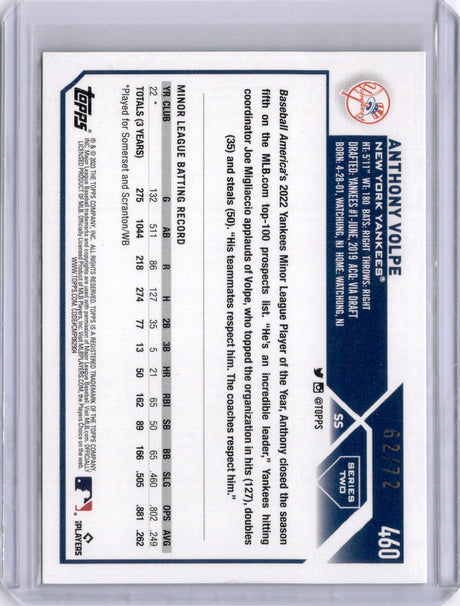 Anthony Volpe 2023 Topps Series Two Black Parallel Rookie RC /72 Yankees
