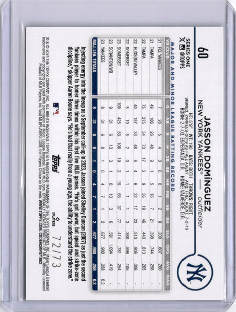 Jasson Dominguez 2024 Topps Black Parallel /72 Rookie RC Baseball