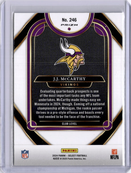 JJ McCarthy 2024 Panini Select Red Yellow Shock Rookie RC Vikings
