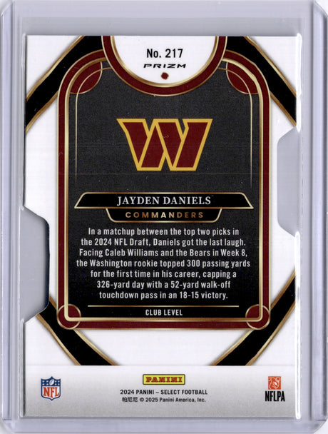 Jayden Daniels 2024 Panini Select Silver Prizm Die Cut Rookie RC Commanders