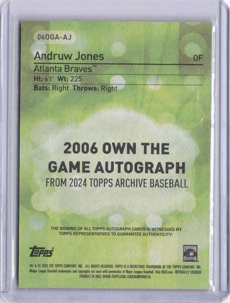 Andruw Jones 2023 Topps Own The Game Auto Braves