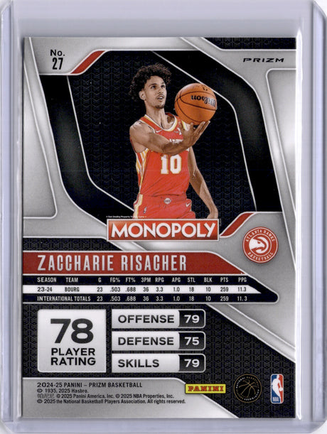 Zaccharie Risacher 2024-25 Panini Prizm Monopoly Free Parking Rookie RC Hawks