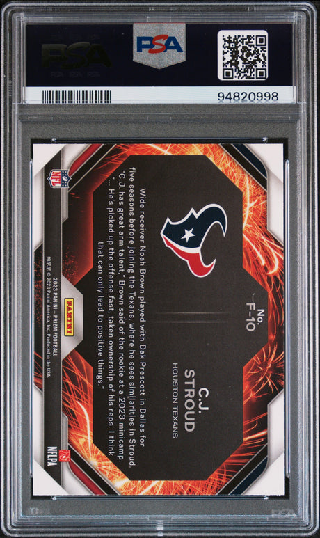 CJ Stroud 2023 Panini Prizm Fireworks Rookie RC PSA 10 Gem Mint Texans