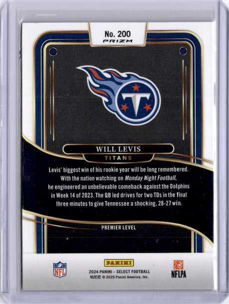 Will Levis 2025 Panini Select Zebra Prizm SP
