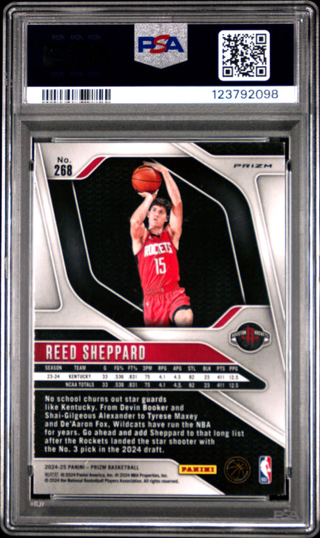 Reed Sheppard 2024 Panini Prizm Silver Rookie RC PSA 7 Rockets