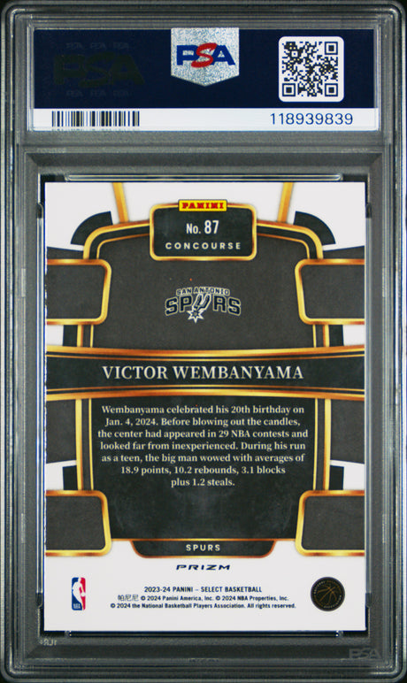 Victor Wembanyama 2023 Panini Prizm Rookie RC PSA 10 Gem Mint Spurs