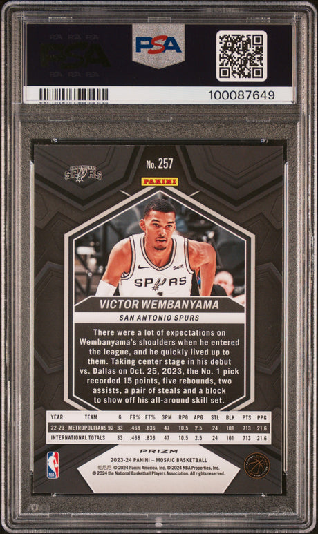 Victor Wembanyama 2023 Panini Mosaic Reactive Yellow Rookie RC PSA 10 Spurs