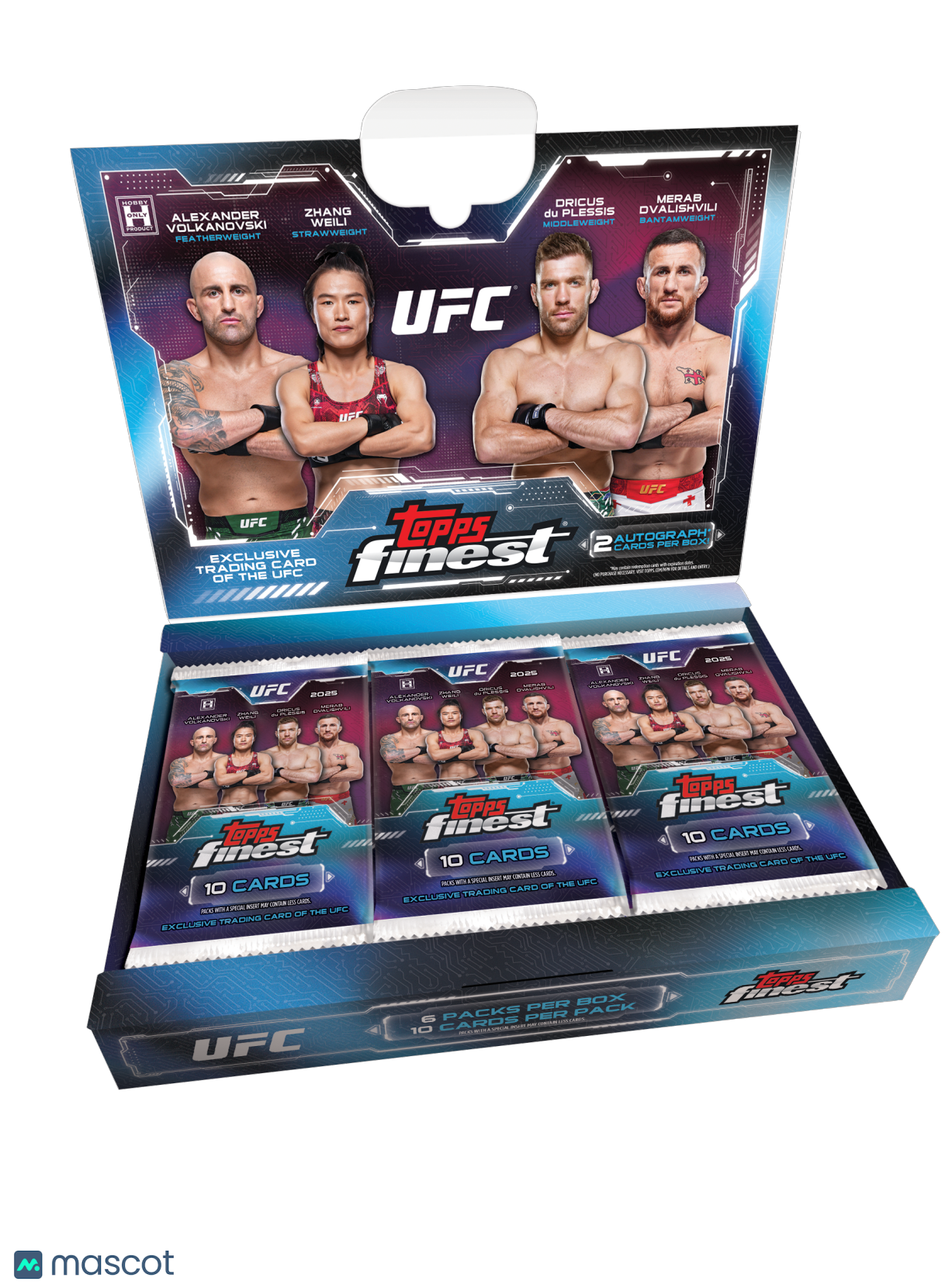 The 2025 Topps Finest UFC Hobby Box dishes out knockout thrills with every rip. With its chrome-finish, vibrant refractors and autographs of the sport’s biggest names and rising stars, this release stands as the must-have addition to any serious MMA collector’s lineup. Whether you’re lining up legends or scouting tomorrow’s championship contenders, this box brings the heat.