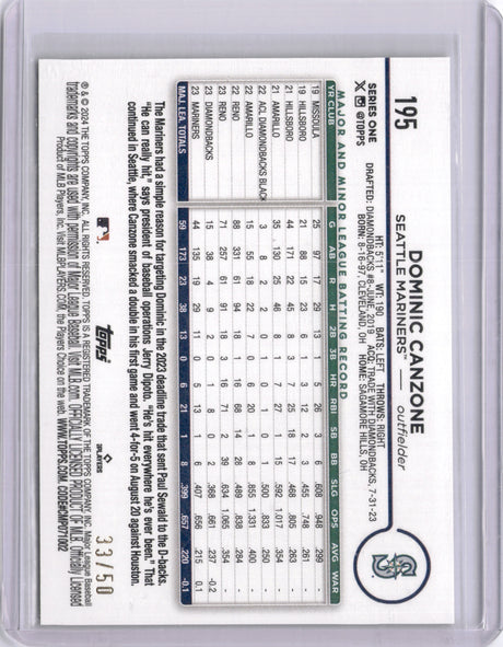 Dominic Canzone 2024 Topps Yellow Crackle /50 Rookie RC Mariners