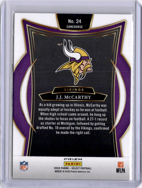 JJ McCarthy 2024 Panini Select Red Yellow Shock Rookie RC Vikings