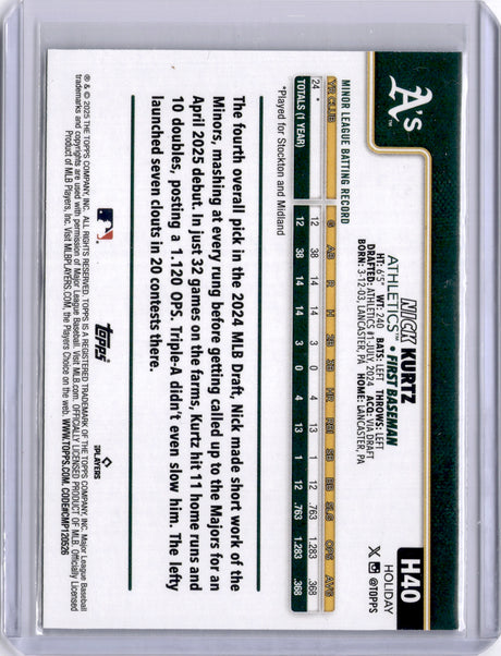 Nick Kurtz 2025 Topps Holiday Blue Metallic Glitter Rookie RC A's