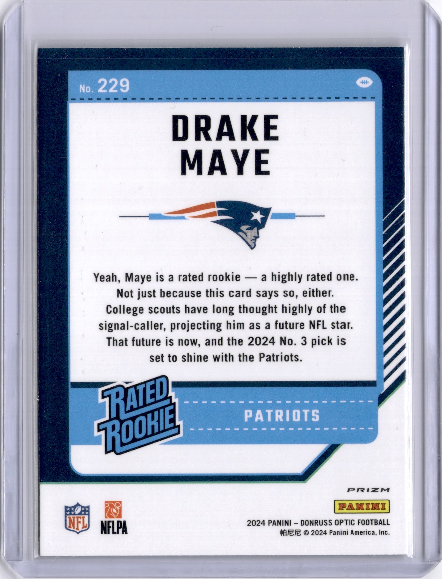 Drake Maye 2024 Panini Donruss Optic Holo Rookie RC Patriots
