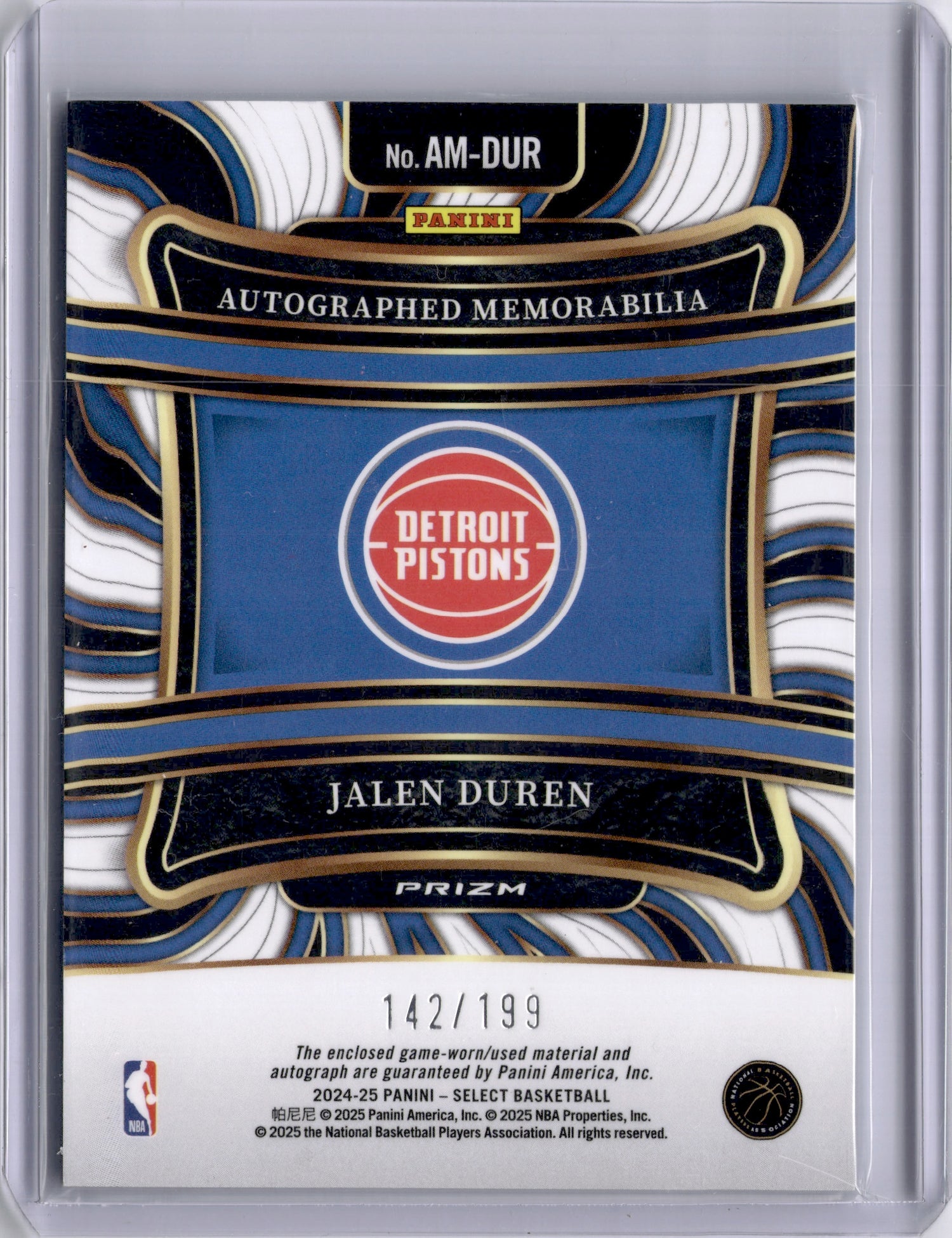 Jalen Duren 2022-23 Panini Select Silver Prizm Auto /199 Game Used Patch