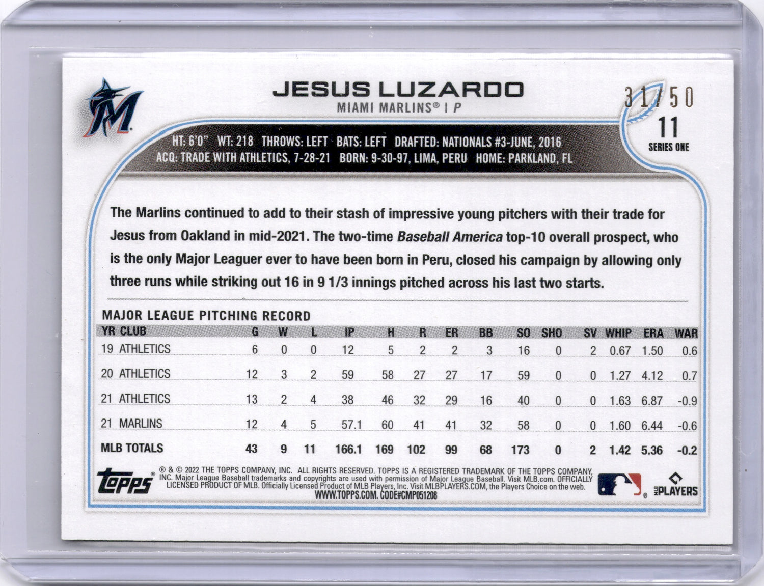 Jesus Luzardo 2022 Topps Series 1 1st Edition Red Foil 31/50 Marlins