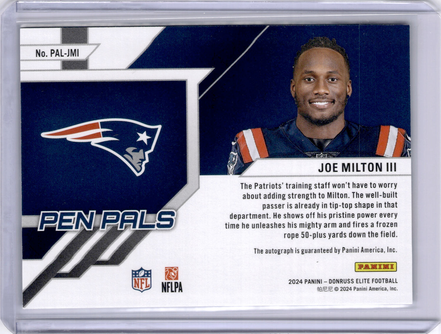 Joe Milton III 2024 Panini Elite Pen Pals Autograph On Card Auto Rookie RC