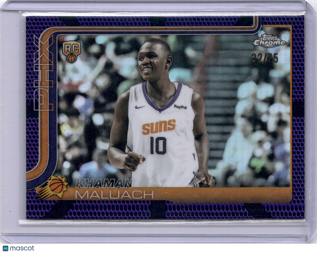 Khaman Maluach 2025 Topps Chrome Purple Basketball Rookie RC /75 Suns is backordered and will ship as soon as it is back in stock.